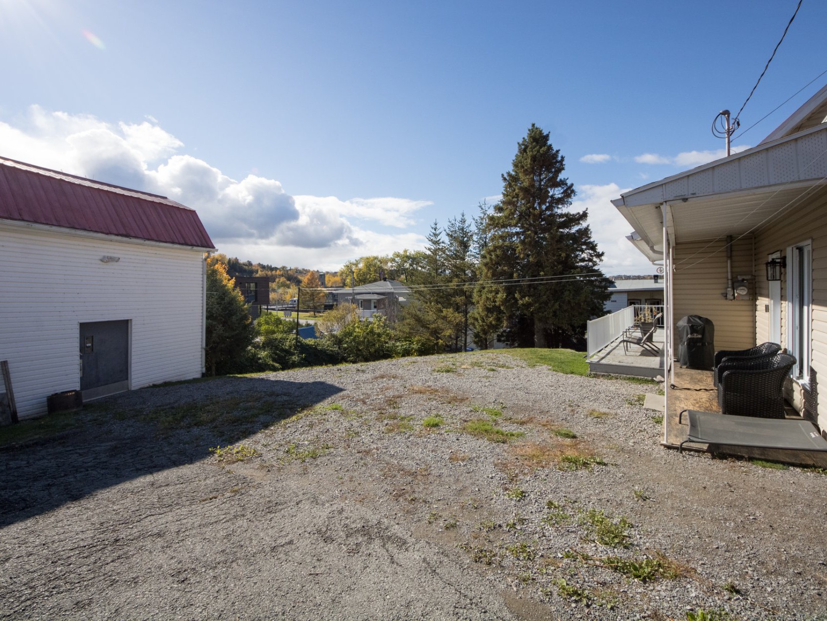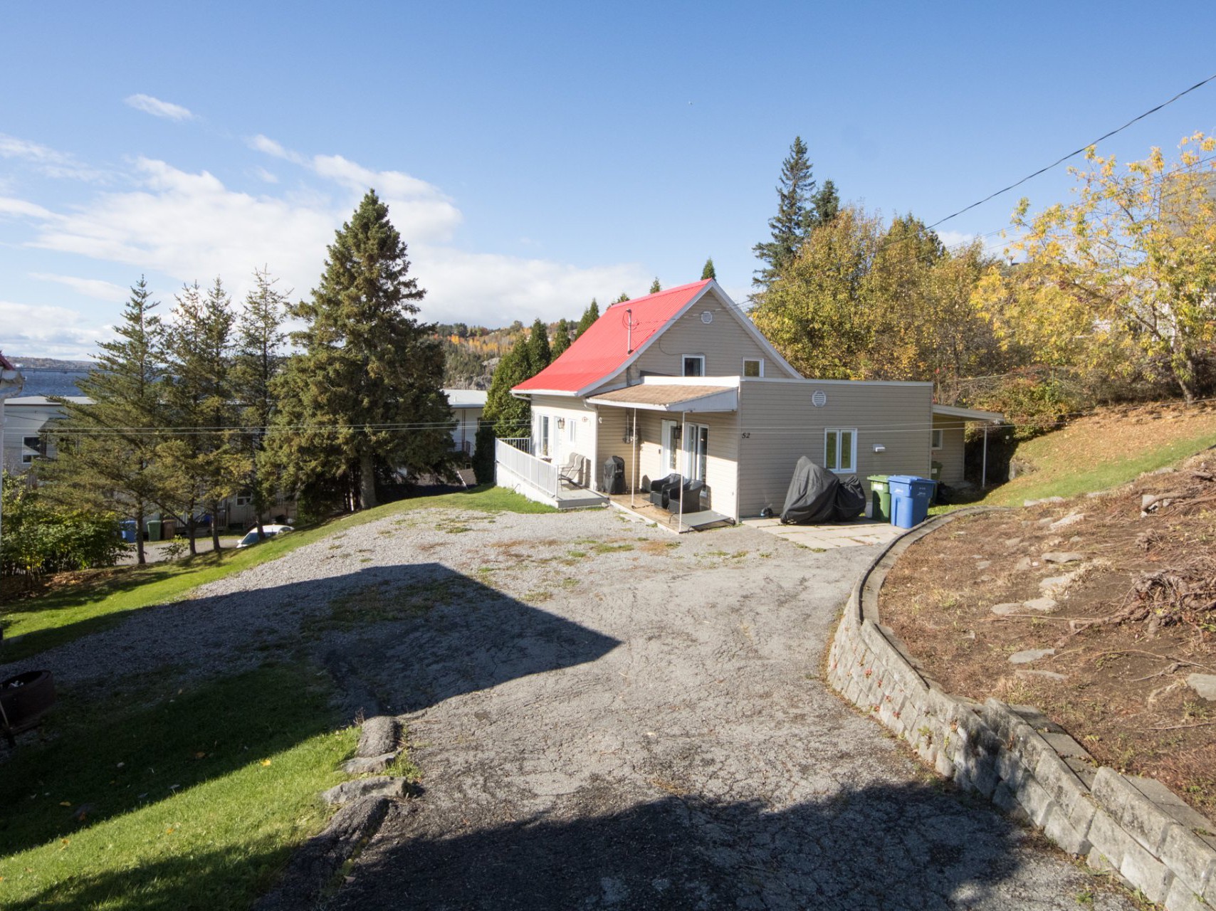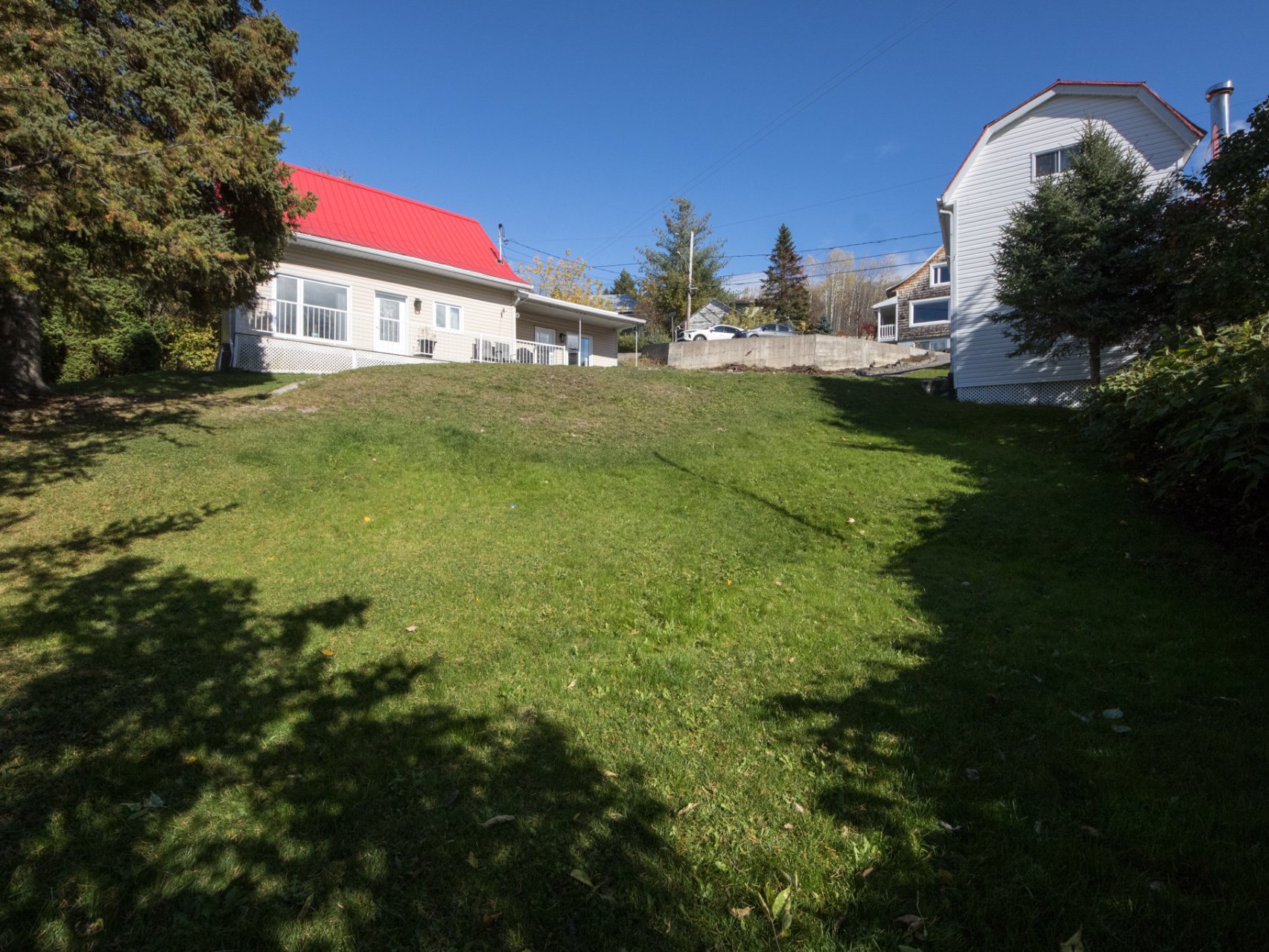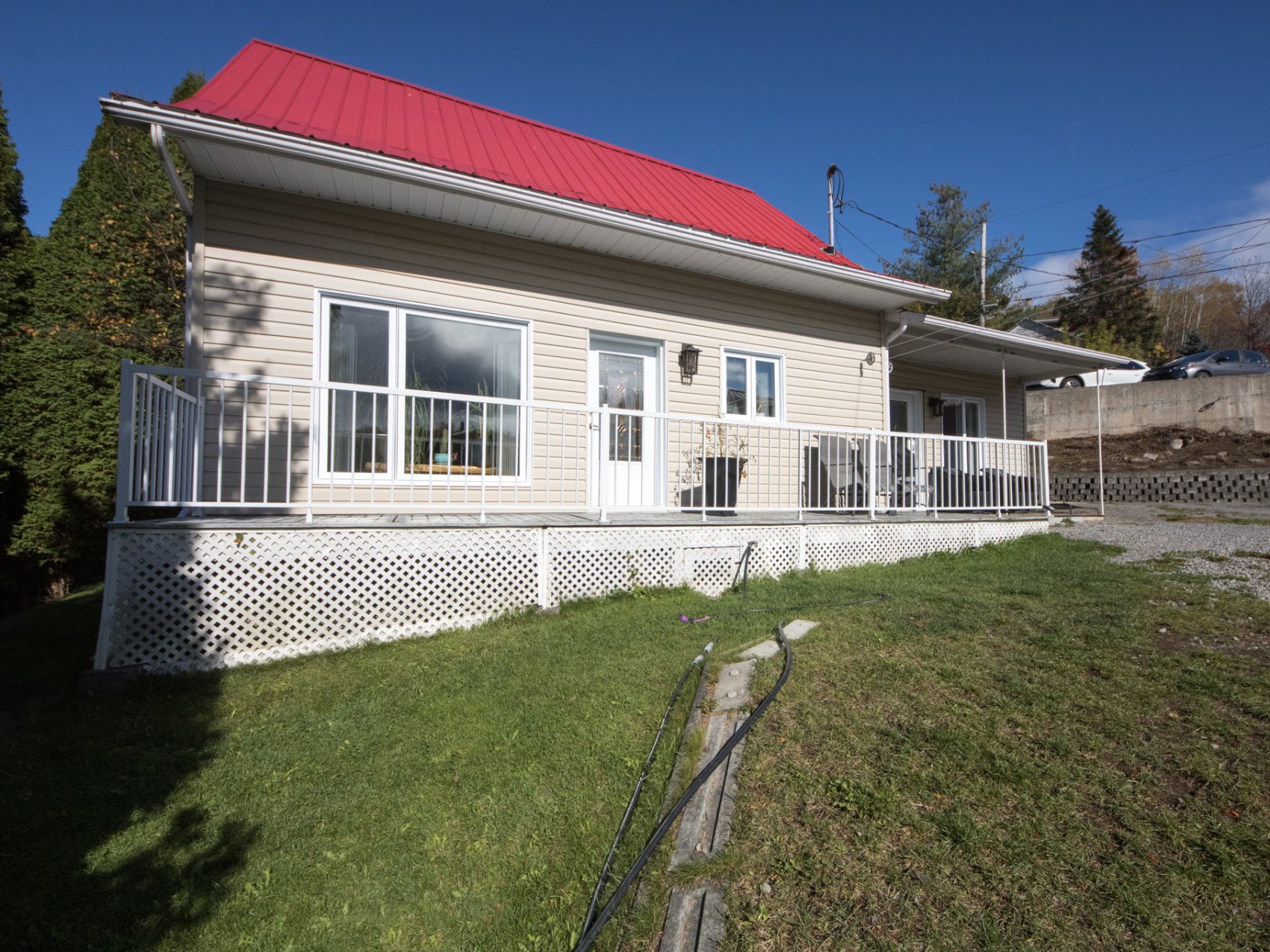 Le terrain de plus de 10 000 pi² est en pente légère et permet de profiter d'un bel espace extérieur avec remise, abri d'auto et stationnement pour plusieurs véhicules. Une prise électrique est également installée pour le chauffe-moteur.
